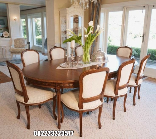 - Meja Makan 8 Kursi Kayu Jati Motif Sofa Krem